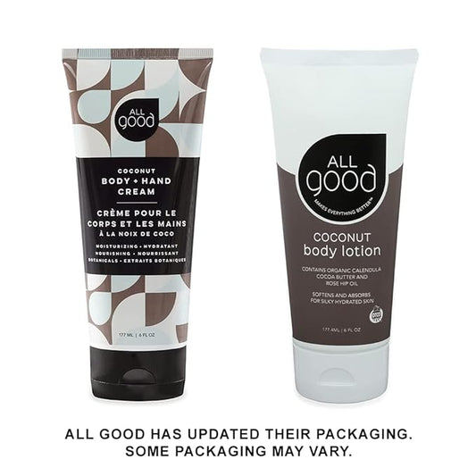All Good Hand & Body Lotion - Moisturizing Organic Lotion, Essential Oils, Calendula, Cocoa Butter, Coconut & Rose Hip Oil, Non GMO, Vegan (3-Pack)(Coconut)