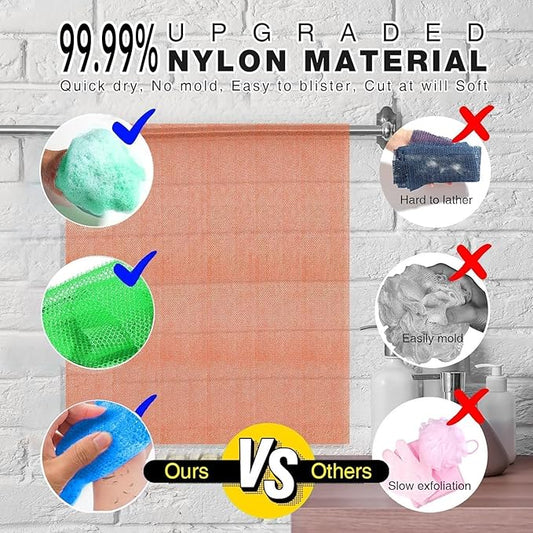 UJFQBH African Net Sponge African Net Long Net Bath Sponge Exfoliating Shower Body Scrubber Back Scrubber Skin Smoother,Great for Daily Use (Pink)