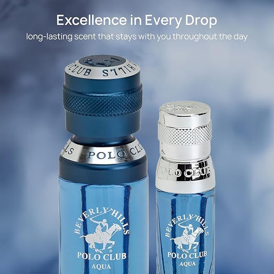 Beverly Hills Polo Club BHPC Men's Eau De Toilette Aqua Bonus Pack - Long-Lasting Fragrance for Him, 2.2 Fl Oz Total (1.7oz + Travel 0.5oz)