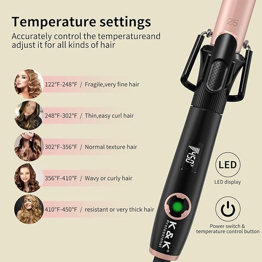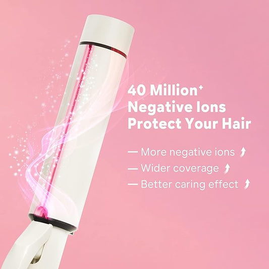 1.5 Inch Extra Large Curling Wand for Long Hair - Ceramic Tourmaline Barrel with 40000000 Negative Ions, 2 Clips & Heat-Resistant Glove
