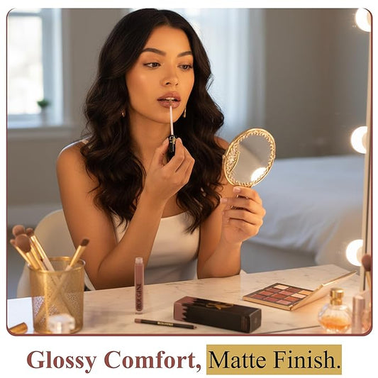 MAKI YIKA 2Pcs Matte Liquid Lipstick Set Burgundy Nude Lipstick Long Lasting Smudgeproof Transfer Proof Lip Makeup, Burgundy/LatteNude