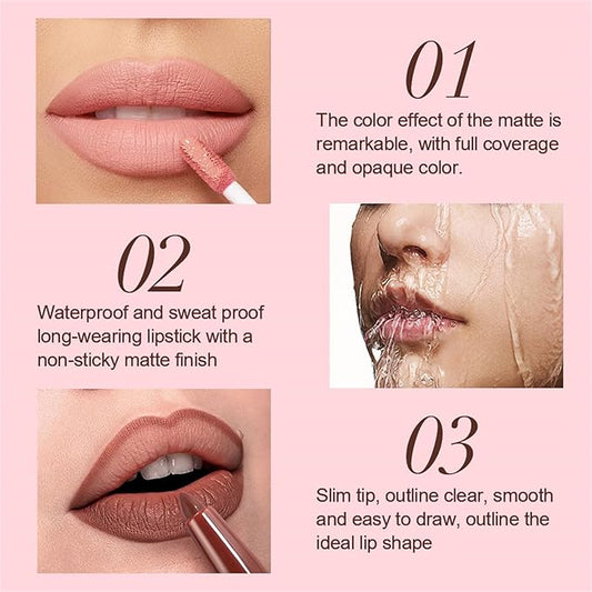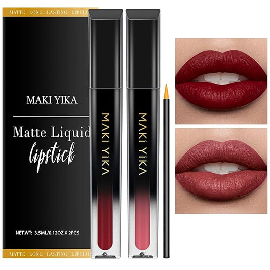 MAKI YIKA 2Pcs Matte Liquid Lipstick Set Dark Red Nude Lipstick Long Lasting Smudgeproof Transfer Proof Lip Makeup, DarkRed/LatteNude