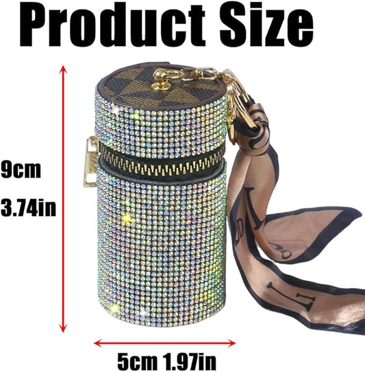 Bling Rhinestone Shiny Lipstick Case Keychain, Leather Diamond Lip Gloss Holder, Travel Lipstick Organizer for Purse Perfume Fingernail Polish (Colorful)