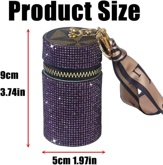 Bling Rhinestone Shiny Lipstick Case Keychain, Leather Diamond Lip Gloss Holder, Travel Lipstick Organizer for Purse Perfume Fingernail Polish (Purple)