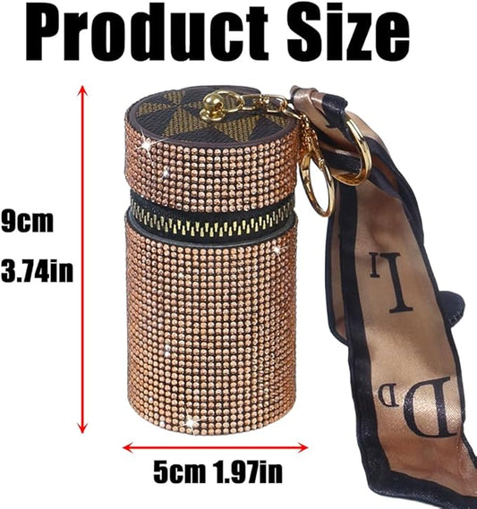 Bling Rhinestone Shiny Lipstick Case Keychain, Leather Diamond Lip Gloss Holder, Travel Lipstick Organizer for Purse Perfume Fingernail Polish (Champagne)