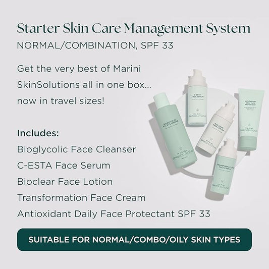 Travel Size Starter Skin Care Management System, Normal to Combination Skin with Antioxidant Daily Face Protectant SPF 33 - Cruelty Free - Made in the USA