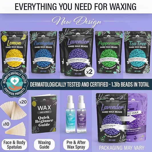 Tress Wellness Wax Beads - Safe for Skin - Dermatologically Tested - At-Home Kit for Bikini, Brazilian & Full Body - Variety 1.3lb
