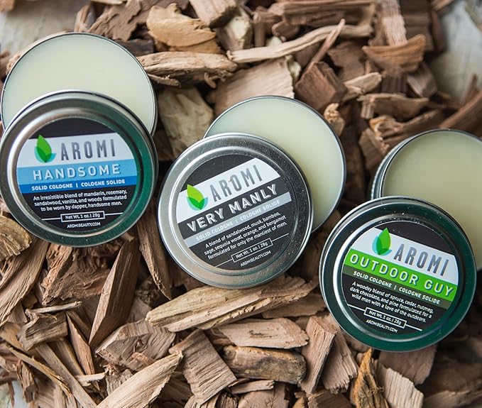 Aromi Solid Cologne | Sweet, Vanilla, Musk Fragrance, Sandalwood, Vegan and Cruelty-free Scent, Portable, Travel, Small Gift, Men's Stocking Stuffer, Alcohol-free (Handsome)