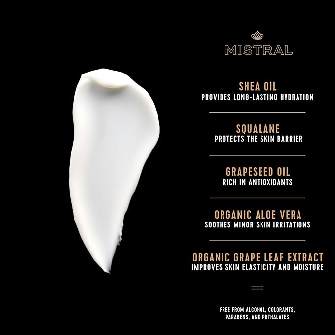 Mistral Cedarwood Marine Body Lotion for Men | Moisture-Rich Body Cream | Fast-Absorbing Men’s Lotion with Shea Oil & Squalane | Natural & Paraben-Free | Masculine Scent – 13.5 fl oz