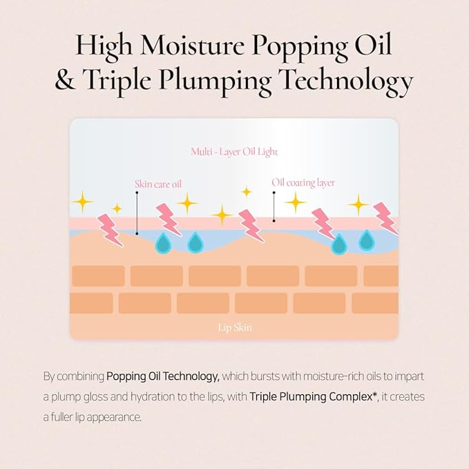 - [MOISTURE-POPPING OIL TECHNOLOGY FOR DEEP HYDRATION] Enriched with hydration-bursting oils that melt into the lips, locking in plumping moisture and providing a dewy, high-shine gloss that keeps lips soft and nourished.