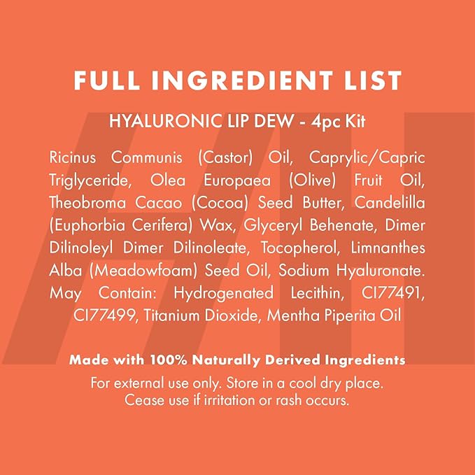 - ULTRA HYDRATING LIP DEWS - 4 pack, 0.32oz hyaluronic lip tints that delivers intense hydration, visibly plumping your lips with a pop of color. In a range of flattering shades to match your look.