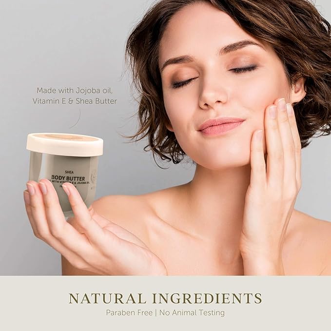 - Deeply Nourishing Shea Butter Lotion: Enriched with Shea Butter, Vitamin E, and Jojoba Oil, our rich body butter melts into the skin for lasting hydration. Non-greasy and fast-absorbing, it leaves hands and body feeling silky smooth all day.