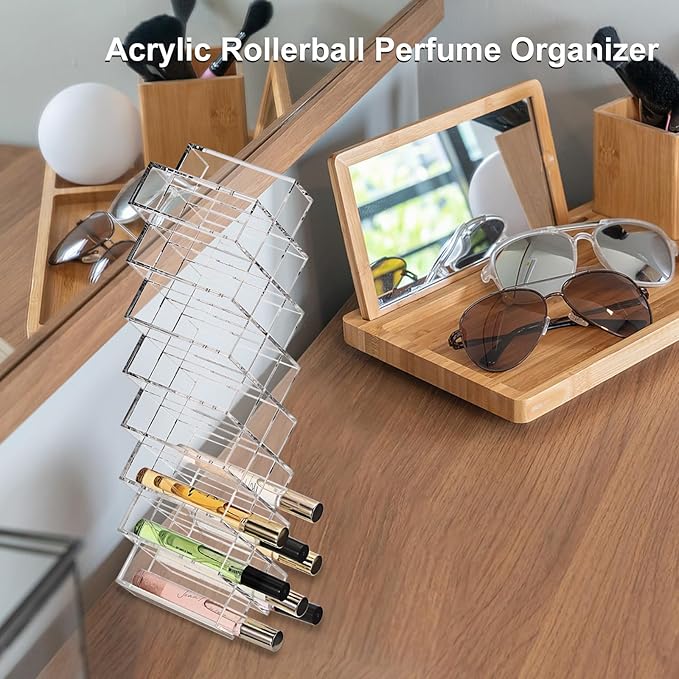- 【Stable & Sturdy】Our rollerball perfume organizer was made of clear acrylic material, light, stable and sturdy. The unique clear appearance creates attractive display, which every female will fall in love with at first glance