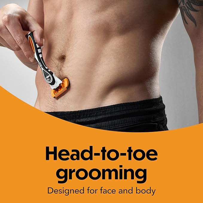 - SHAVE: For an ultra-close, comfortable shave, switch to the mens razor cartridge with 5 long-lasting flexible blades and lubrication strip